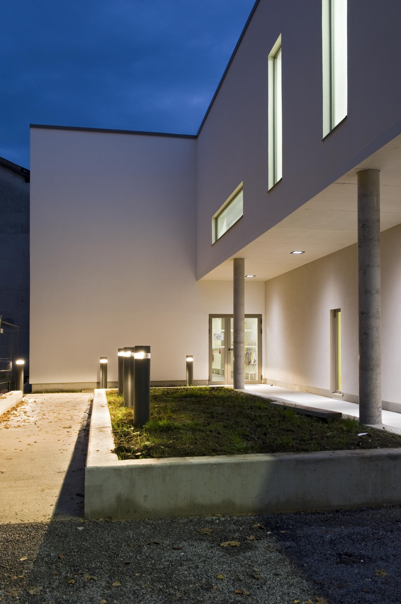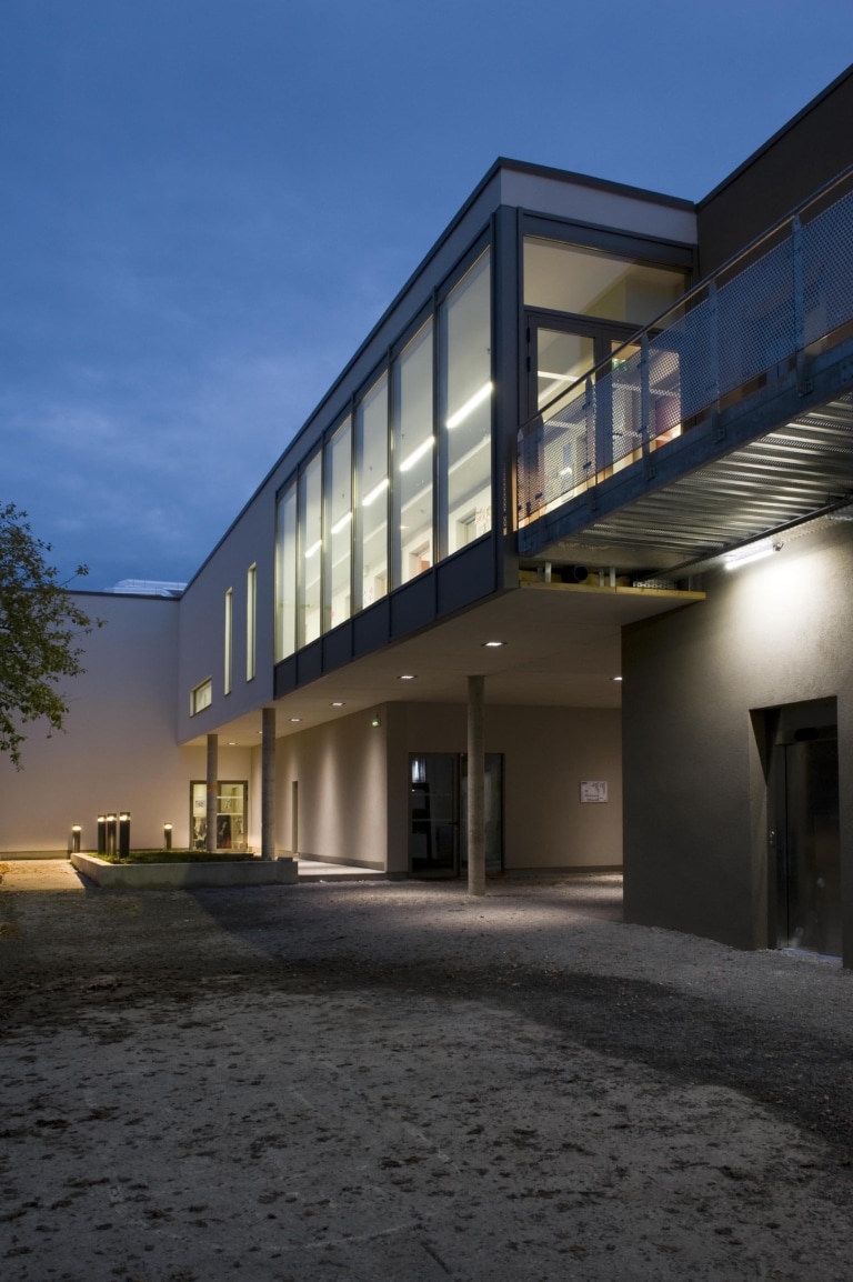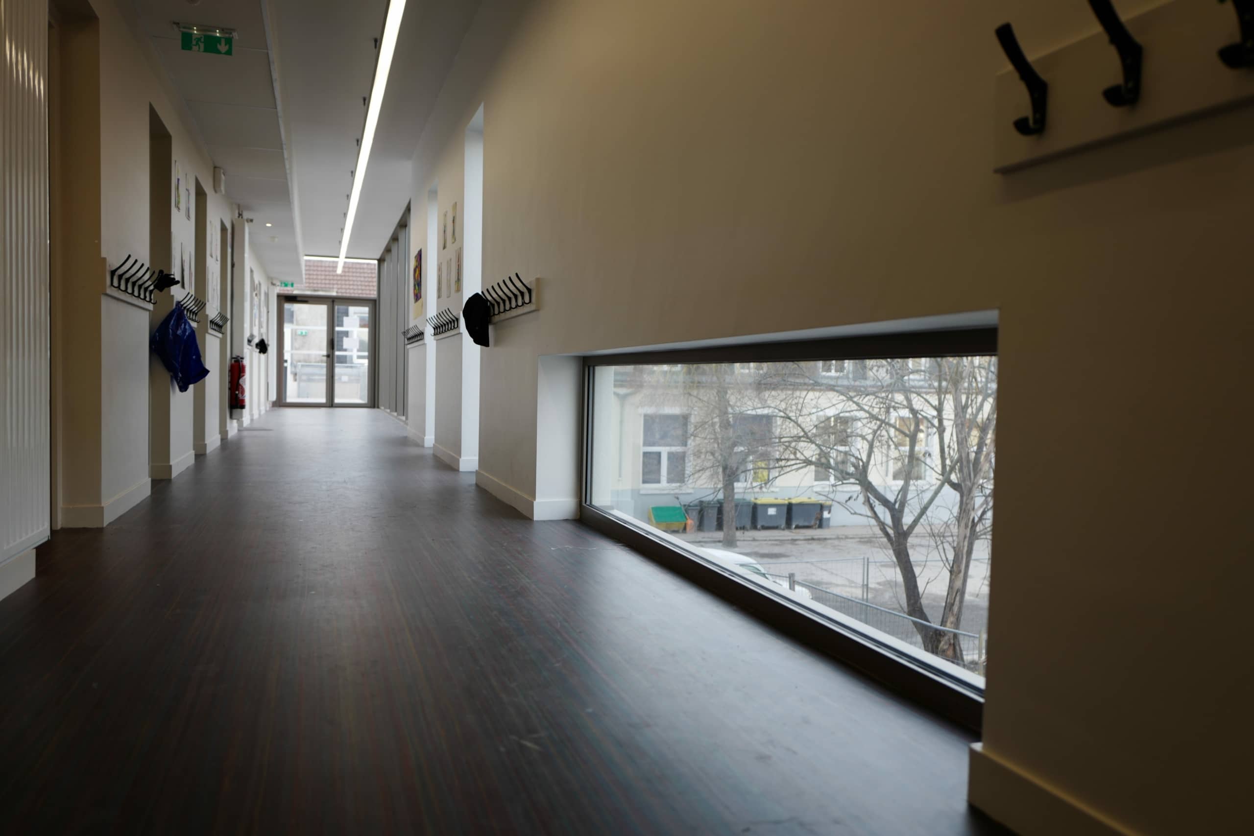Ce nouveau bâtiment permet d’offrir un total de 12 classes sur l’ensemble du projet, avec de larges baies vitrées donnant sur la place Nicolas Bergier. Il accueille ainsi 5 salles de classe de maternelle, 3 salles de classe de primaire et 4 autres salles dans le bâtiment principal.