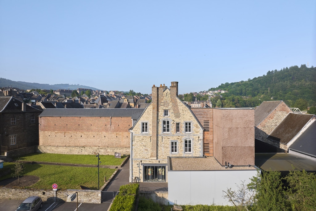 Les visiteurs ont ici l’opportunité de découvrir au travers d’une exposition l’histoire de l’ardoise dans la région. Le béton matricé de l’extension évoque ainsi ce matériau anciennement extrait dans le secteur. La nouvelle construction présente une écriture sobre afin de mettre en valeur le bâtiment de l’ancien Couvent des Carmélites.
